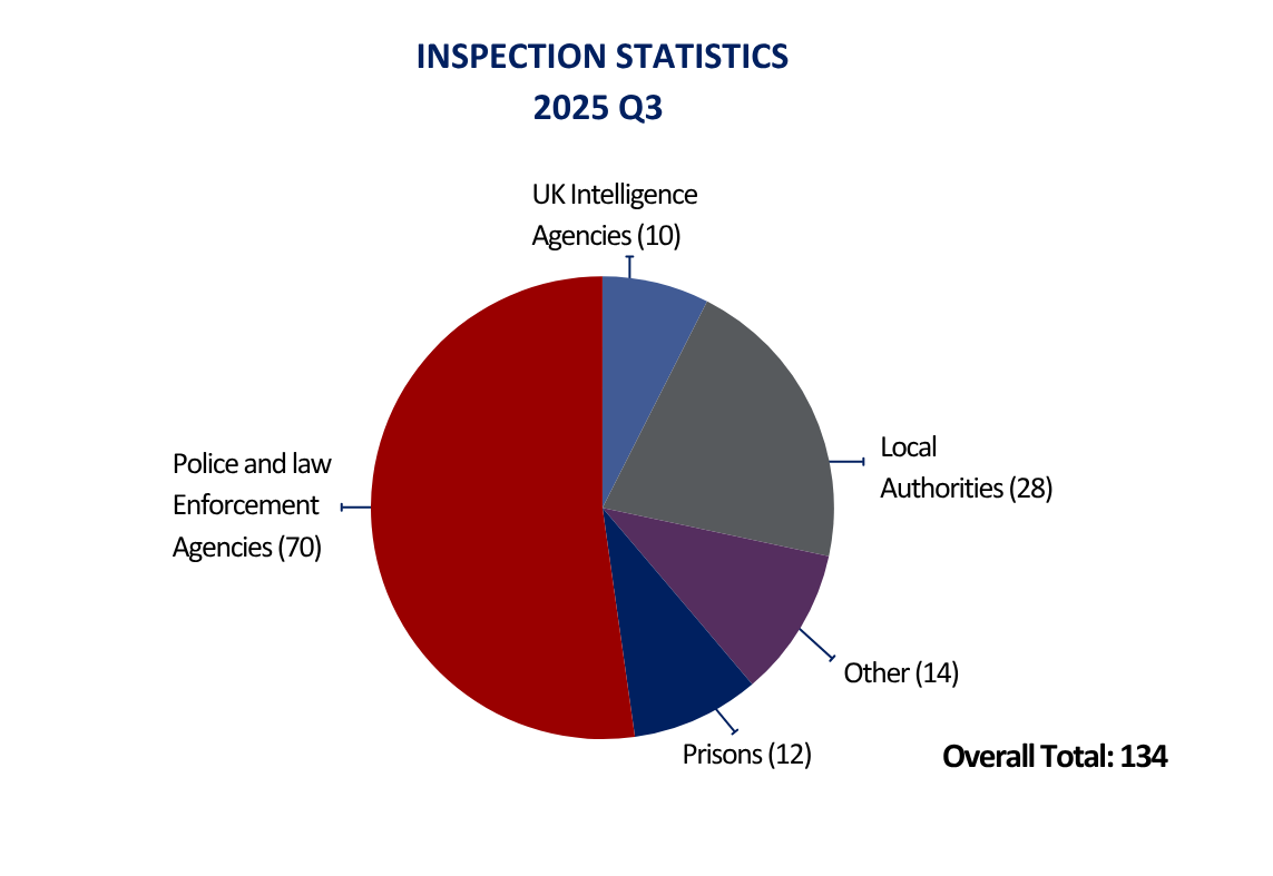 A breakdown of the inspections completed by IPCO in Quarter 3 2025 categorised by organisation type.